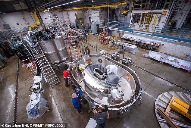 Massachusetts Institute of Technology (MIT) scientists, working with Bill Gates-backed Commonwealth Fusion Systems (CFS), developed the magnet. It is the world's strongest high temperature superconducting magnet and was tested at the MIT Plasma Science and Fusion Center in Cambridge, Massachusetts. 'This is not hype, this is reality,' Andrew Holland, Chief Executive Officer of the Fusion Industry Association, told CNBC. The test is significant because it produced a strong magnetic field required for the fusion process, while consuming just 30 watts of power. When the MIT team use these magnets to build the first fusion machine, known as a tokamak, it is expected to generate more power than it uses to start and run. During the test, the magnet at MIT reached 20 tesla - a unit of measurement showing the magnet's strength - and named for the engineer Nikola Tesla. It did so while consuming just 30 watts of energy, orders of magnitude less than the copper-based magnet previously tested by MIT, which used 200 million watts. This reduction in energy use is significant, as it means when they use the magnets to build the TOKAMAK it will achieve 'net energy' - the point where it takes less energy to initiate and sustain a reaction that it produces - making this test a significant milestone in an effort to create a 'sun on Earth' and provide cleaner, safer and renewable power, MIT said. Magnets are a core component of the donut-shaped tokamak, as they hold in place the ball of plasma and energy as deuterium and tritium are fused into helium. Both are found in Sea Water. There is a race to create viable fusion energy, with ITER, an international nuclear fusion research and engineering megaproject, about 75 per cent of the way there. ITER hopes to achieve net energy by 2026, after completing all the magnets for their tokamak - although the ITER project won't sell energy, rather offer a blueprint for future fusion reactor designs to be used in any participating country. However, the MIT team has managed to create a magnet that produces a magnetic field twice that of ITER's with a magnet about 40 times smaller. The scientists from MIT and Commonwealth Fusion Systems said they may have a device ready for everyday use in the early 2030s. 'This was not designed to be a science experiment. This was designed to be commercial,' said MIT Vice President Maria Zuber, a prominent physicist. Unlike existing fission reactors that produce radioactive waste and sometimes catastrophic meltdowns, proponents of fusion say it offers a clean and virtually limitless supply of energy, with a limitless supply of fuel. If, that is, scientists and engineers can figure out how to harness it - they have been working on the problem for nearly a century. Rather than splitting atoms, fusion mimics a process that occurs naturally in stars to meld two hydrogen atoms together. In this case they use deuterium and tritium, and produce a helium atom - as well as a whole load of energy. Achieving fusion requires unimaginable amounts of heat and pressure. One approach to achieving that is to turn the hydrogen into an electrically charged gas, or plasma, which is then controlled in a donut-shaped vacuum chamber. With the magnet technology now successfully demonstrated, the MIT-CFS collaboration is on track to build the world's first fusion device that can create and confine a plasma that produces more energy than it consumes.