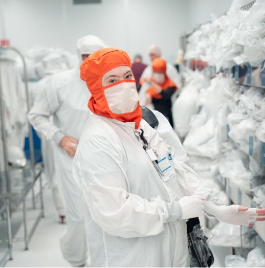 Hall, 29, grew up in Seattle as a Girl Scout obsessed with tying the perfect knot. She was president of the Edmonds College rocketry club when she got her associate degree. At Washington State University, she majored in materials science and engineering—and transcribed notes for a professor writing a textbook on quantum mechanics. She loves planning camping trips even though she doesn’t actually like camping. In her spare time, she works with her hands, quilting and piecing together elaborate Ravensburger jigsaw puzzles. All of which turned out to be excellent preparation for navigating a machine with more than 100,000 parts. “You’re always problem-solving,” said Alex Jordan, another ASML engineer. “How can I be more efficient? Where can I optimize this? And what if we tried that?” When the company recruits for customer-support positions, ASML looks for diligent, disciplined and detail-oriented engineers. Hall had the right kind of technical mind and temperament for the job. When one of her professors heard that a semiconductor company was hiring, Hall passed along her résumé and soon received emails from ASML asking her to apply. Most college students know nothing about ASML. In fact, they probably know more about ASMR. Hall was intrigued when her interviewer asked how she felt working in tight spaces and bunny suits. Then she found out the entry-level job included extensive travel. That was all she needed to hear to accept the offer from ASML. “I always wanted to travel,” she said, “and I’d barely been down the West Coast.” Her first long trip was a month in Taiwan for her Fab Ready 1 course at ASML’s training center, where she familiarized herself with the EUV machine’s parts: the scanner (the part with the mirrors that focus the light onto the wafer), the source (the part that generates the light) and the drive laser (the part with the lasers). She also learned that each part has its own personality. At the Micron fab, the scanner is called Monica—as in the “Friends” character. “Because everything must be perfect,” Hall says. “The conditions must be just so for her to function.” She came to know Monica when she returned to Boise for on-the-job training. Meanwhile, she developed her expertise through months of Fab Ready 2 classes in Taiwan, San Diego and Germany, where she made a pilgrimage to the puzzle mecca of Ravensburg. She apprenticed for nearly a full year before she was cleared to work on the EUV machine by herself. When she’s not on different continents, Hall is stationed in the ASML office a short drive from Micron’s campus. She works in 12-hour shifts, from 6 a.m. till 6 p.m. In the winter, she comes to work long before sunrise and leaves well after sunset. Some days, she goes straight to the fab. Other days, she’s at her desk, looking at numbers on her multiple screens until “I’m sure the machine isn’t going to self-combust,” she says. At that point, Hall shifts her attention to planning the series of actions she will perform during the “scheduled down,” a routine outage for preventive maintenance to minimize the risk of an “unscheduled down.” After all, the only thing more satisfying than fixing a machine is having a machine that doesn’t need to be fixed. But any kind of work on the machine is what she considers fun. It’s dealing with other people that she finds stressful. “Our machine is complex enough that it has a personality, but it’s still a machine. If you hit the right buttons, she will come up. You just have to figure out what buttons to press. I can solve that. We can solve that,” Hall said. “Humans are vastly more complex than any machine that I know of.” Fab Life